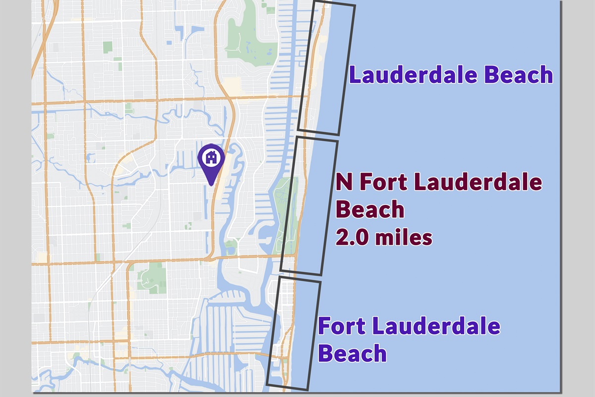 It's right off US-1, the main north-south thoroughfare. You'll be just far enough away that you won't hear any traffic noise, but you'll have fast access to everywhere in Fort Lauderdale -- the beach, Las Olas Blvd, Wilton Manors, and the airport.